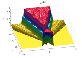 在传统的四维爱因斯坦引力理论中,引力的量子化、黑洞塌缩等问题一直是比较难处理的问题。利用二维引力模型,人们可以对这些难题进行严格的讨论,因此二维引力是引力理论研究的一个重要方向。2021年,我们经过研究发现一类二维引力-标量模型的场方程可以写成简单的一阶形式,并成功构造出了解析的拓扑孤子解。这种解在很多方面与五维膜世界解有着相似的性质。同时,我们还利用超对称量子力学的方法证明了该模型的任意静态解在线性扰动下都是稳定的。这一研究为进一步分析自引力孤子的碰撞现象打下了基础。(J. High Energy Phys. 04 (2021) 118)