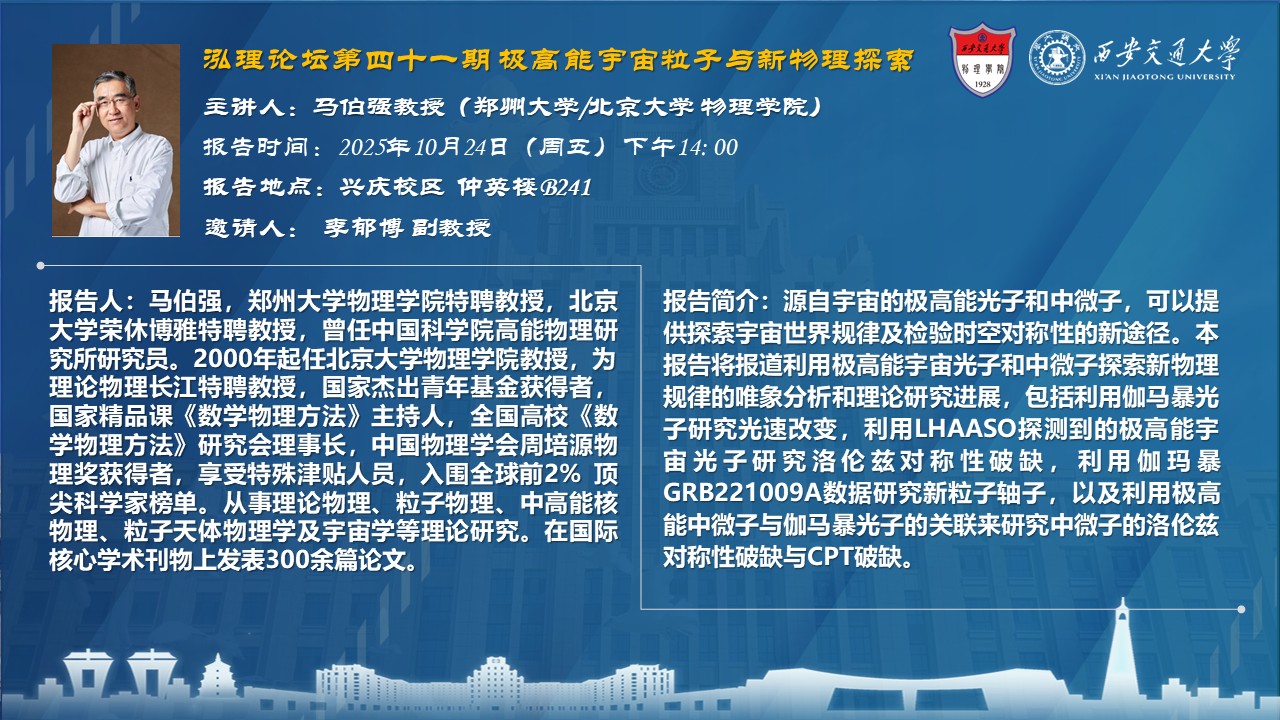 【泓理论坛第四十一期】——极高能宇宙粒子与新物理探索