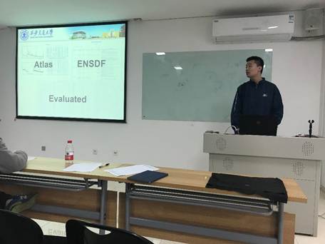 从汇报的情况来看,同学们都顺利完成在学习及科研任务,并且取得了较好的成绩。宋开心同学在加州大学伯克利分校交流学习期间,加入了劳伦斯国家实验室核数据组,在一份中子非弹性散射能谱的data evaluation工作中作出重要贡献,得到导师的高度评价。本次共有11名同学参加汇报,其他同学由于个人申请和科研导师的推荐,目前正在国外大学继续交流学习,他们将在返校后单独进行考核。